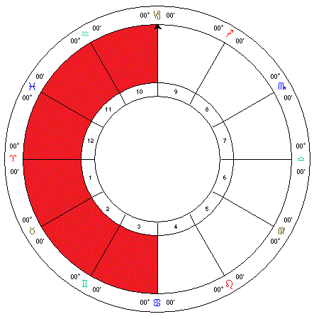 **Eastern Houses: **Includes the 1st, 2nd, 3rd, 10th, 11th and 12th houses.Shows the individual is independant if there is an overbalance of planets here.