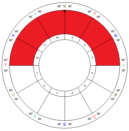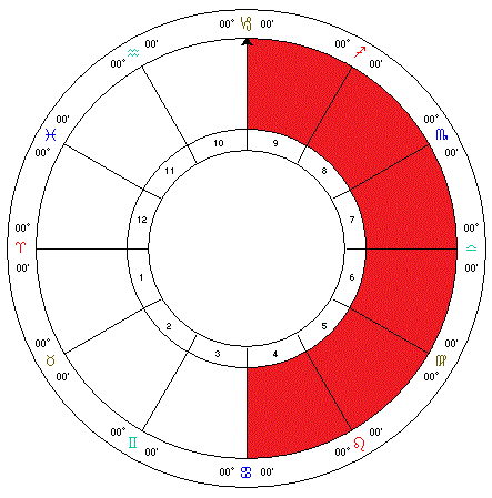 **Western Houses: **Includes the 4th, 5th, 6th, 7th, 8th and 9th houses. Shows the individual is dependant on others if there is an overbalance of planets here.